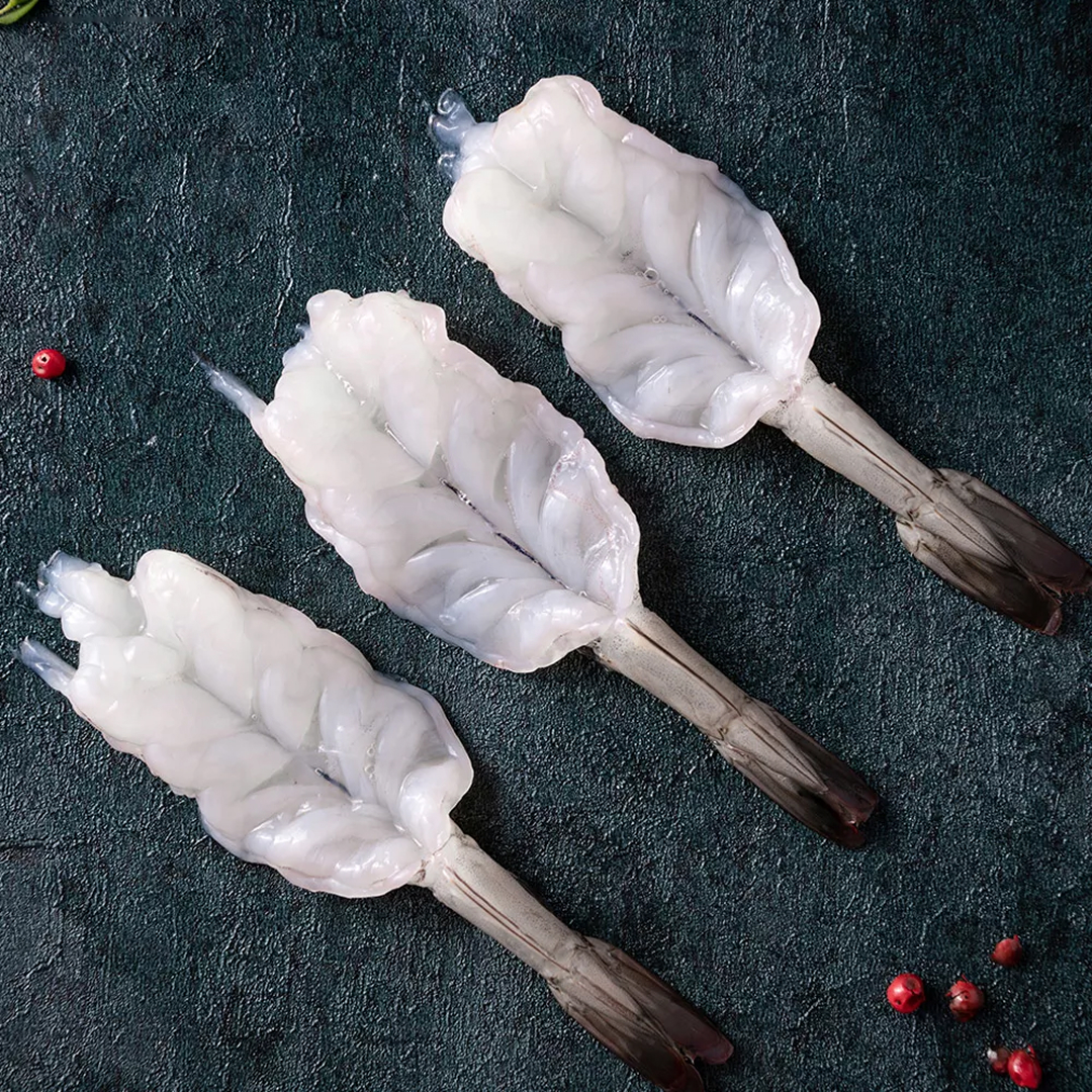 Premium butterfly shrimp, carefully peeled and split for even cooking and a larger surface area. Known for their tender, juicy texture and sweet flavor. Ideal for frying, grilling, or sautรฉing, making them perfect for appetizers, main dishes, or seafood platters.